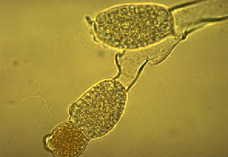 São os fungos mais simples, de hifas cenocíticas, cujo micélio se espalha sobre o substrato, produzindo esporângios na extremidade de algumas hifas que se elevam verticalmente.